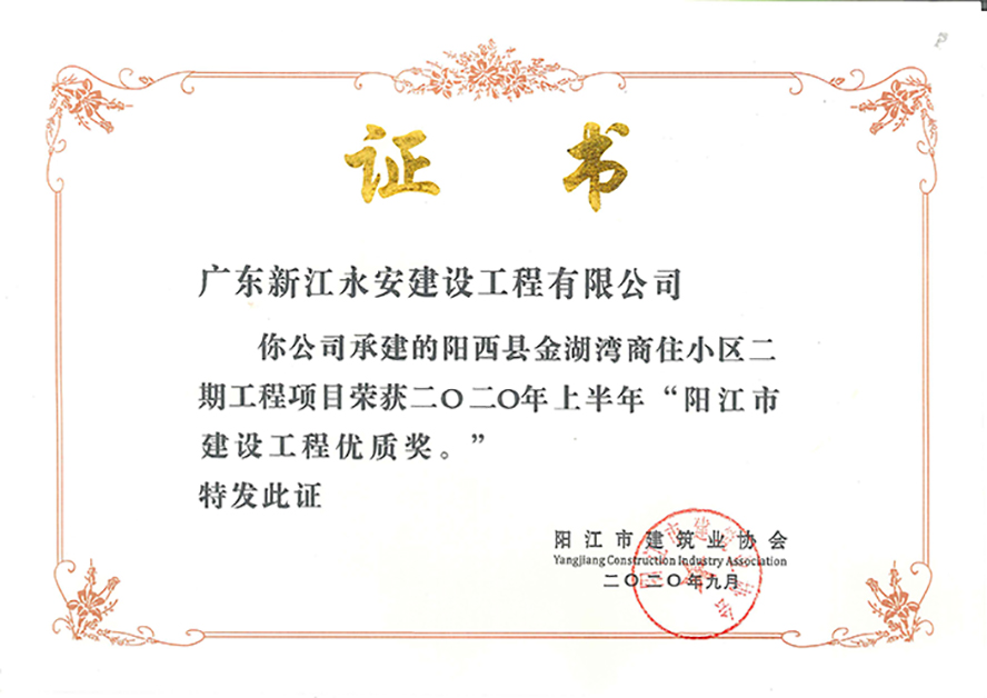 廣東新江永安建設集團有限公司是國.家一級資質企業,成立于二〇〇六年三月,注冊資本為壹億元人民幣,主要從事市政公用工程、建筑工程、公路工程、電力工程、城市及道路照明工程、交通安全設施工程等領域的專業施工。 經過十多年的發展,公司現已取得建設行政主管部門頒發的建筑工程施工總承包一級、市政公用工程施工總承包二級、電力工程施工總承包二級、機電工程施工總承包二級、建筑裝修裝飾工程專業承包一級、消防設施工程專業承包二級、防水防腐保溫工程專業承包二級、城市及道路照明工程專業承包二級、地基基礎工程專業承包二級、輸變電工程專業承包二級、環保工程專業承包二級、鋼結構工程專業承包二級、建筑機電安裝工程專業承包二級、古建筑工程專業承包二級、承裝類五級、施工勞務等16項資質的綜合性施工企業。 本公司總部立足陽江市,近年來不斷向外開拓業務,致力于向全.國各個省市發展。為推進粵港澳大灣區發展建設,在佛山設立大灣區辦公室,另在廣州、江門、東莞、惠州、中山、汕尾等地成立了分公司。公司的管理制度健全、技術力量雄厚、人員配套齊全、設備先進、員工隊伍穩定。 公司現有各類專業技術人員226人,其中高級職稱專業技術人員13人,各種持證項目經理46人,中級職稱專業技術人員48人,各類專業技術管理人員60人,各類持證上崗人員配備齊全。 公司堅持以“守合同、重信用”為根本,以“優質施工企業”和“建筑優質工程”為理念,以“高標準、高水平、高質量”為發展方向。我們將以高效的服務、專業的技術為客戶提供優質的服務,竭誠為社會打造建筑精品工程!